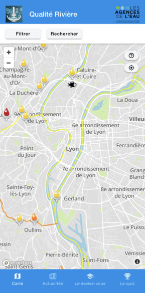 L'application se veut ludique: un quiz a été conçu pour vérifier la culture des utilisateurs sur la gestion de l'eau en France. 17/20 pour Lyon Capitale ! Pour accompagner son développement, l'Agence Rhône Méditerranée Corse a également lancé un podcast sur l'histoire des fleuves et rivières françaises, "En immersion". Un épisode sur le Rhône est paru en avril dernier.