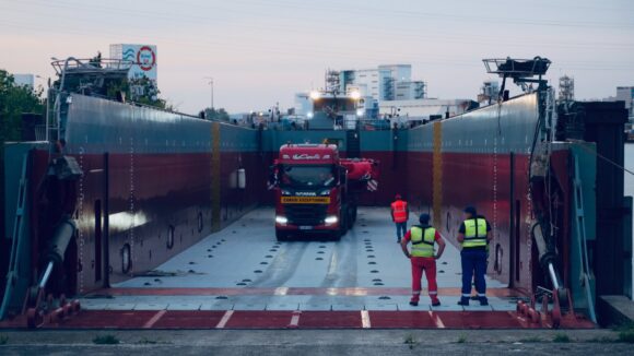Lyon : la roue de coupe du métro B prend une barge (photos)