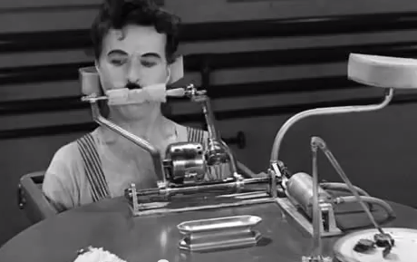 L'occasion de voir ou de revoir Les Temps Modernes de Charlie Chaplin (1936) et sa « eating machine ».