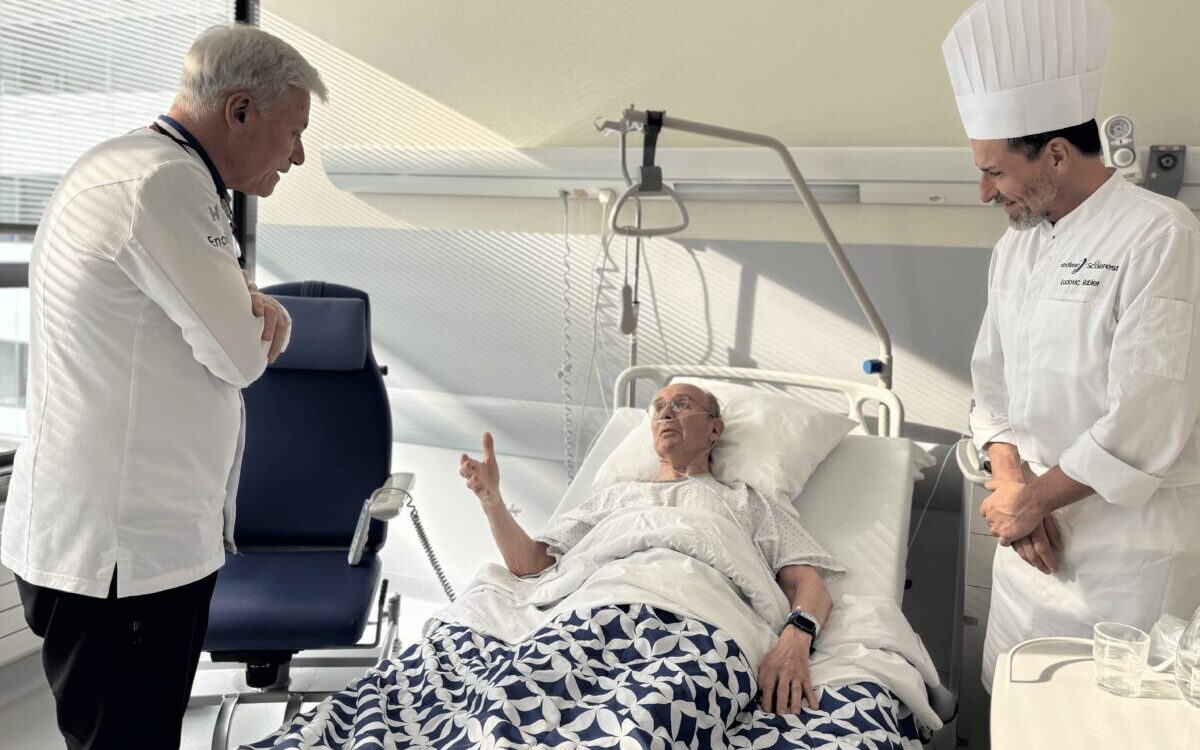 Dans les services, un détail ne trompe pas : les plateaux sont vides. Et dans les chambres, les deux hommes se font reconnaître, surtout le Lyonnais. "J'ai mangé souvent dans votre restaurant, dans les années 90-95, sur les quais de Saône", se souvient un patient en serrant la main au chef Têtedoie. Il livre son verdict sur le repas du midi : "J'en vois beaucoup qui parlent mais qui ne font rien. Mais vous, il n'y a rien à dire !"