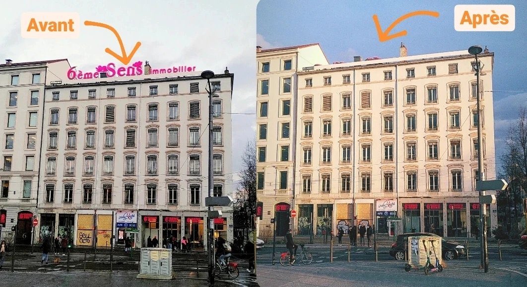 À noter que d'autres opérations similaires sont intervenues avant le retrait du fameux logo rose visible depuis le pont Gallieni. En mars dernier, la publicité du comparateur de vol Liligo installée au-dessus d’un immeuble situé place Antonin Jutard avait été également enlevée.