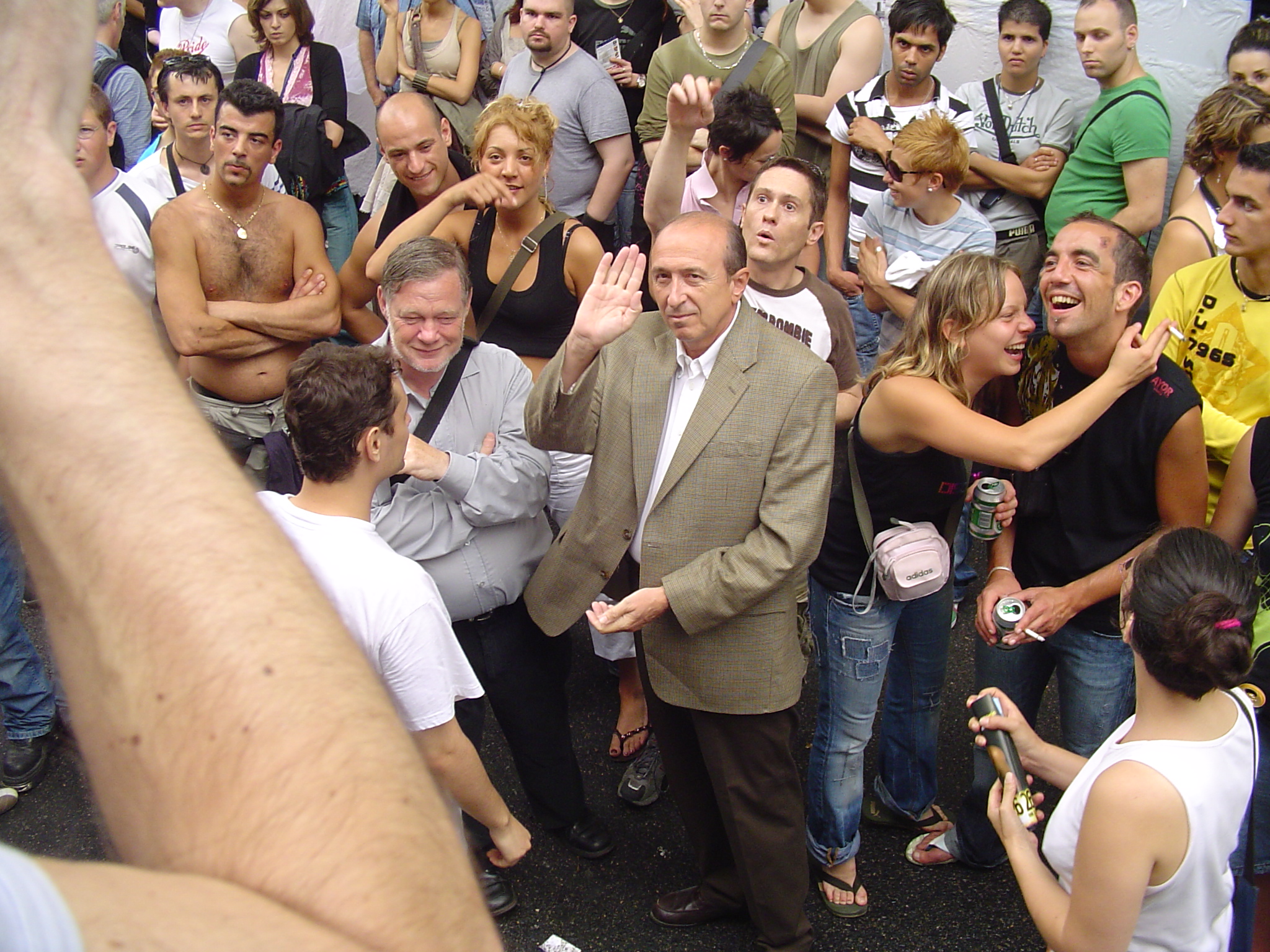 Ils dépareillent un peu, au milieu des torses imberbes, des tenues extravagantes et des sonos hurlantes. Des élus participent toujours à la Marche des Fiertés, la chemise légèrement déboutonnée. Parmi eux, il y a aura peut-être Gérard Collomb (sur la photo ci-dessus, lors de la gay pride de 2006). Un événement qui est chaque année à son agenda, mais que le maire n'honore pas fréquemment. Ce samedi, il pense "y faire un tour". Il y est allé il y a deux ou trois ans avec sa fille aînée. L'occasion d'échanger sur le mariage homosexuel.