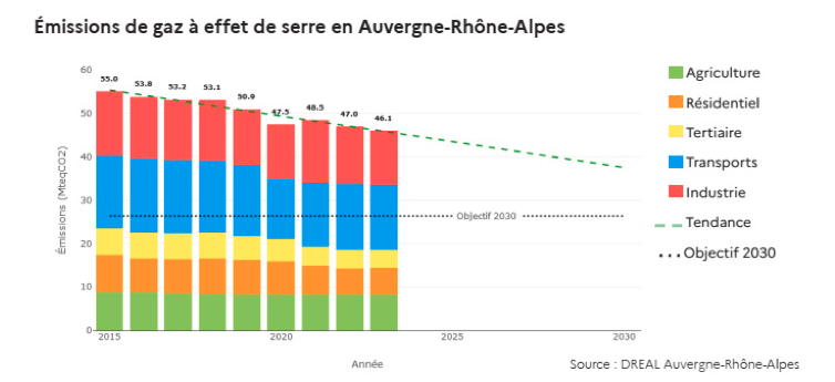 La région Auvergne-Rhône-Alpes est déjà fortement touchée par le changement climatique, en témoigne une hausse moyenne des températures de + 2,1 °C depuis les années 1960. Les conséquences sont visibles : augmentation des journées chaudes, baisse de l’enneigement, allongement des périodes de sécheresse, risques accrus d’inondations et impacts économiques importants. Si la région est particulièrement soumise au changement climatique c'est pour deux raisons principales. "La première est liée à ses caractéristiques géographiques, avec 67 % du territoire régional situé en zone de montagne, la seconde liée à son économie basée sur l’exploitation des ressources naturelles et paysagères qu’il s’agisse d’agriculture, de tourisme, de sports de plein air…" indiquent les services de l'État.