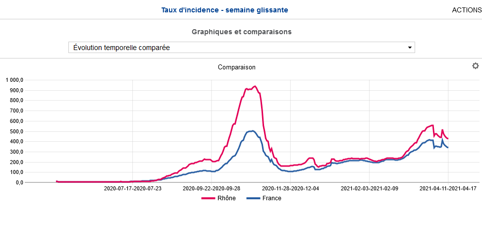 - Rhône : incidence de 425 (-93 en 5 jours)