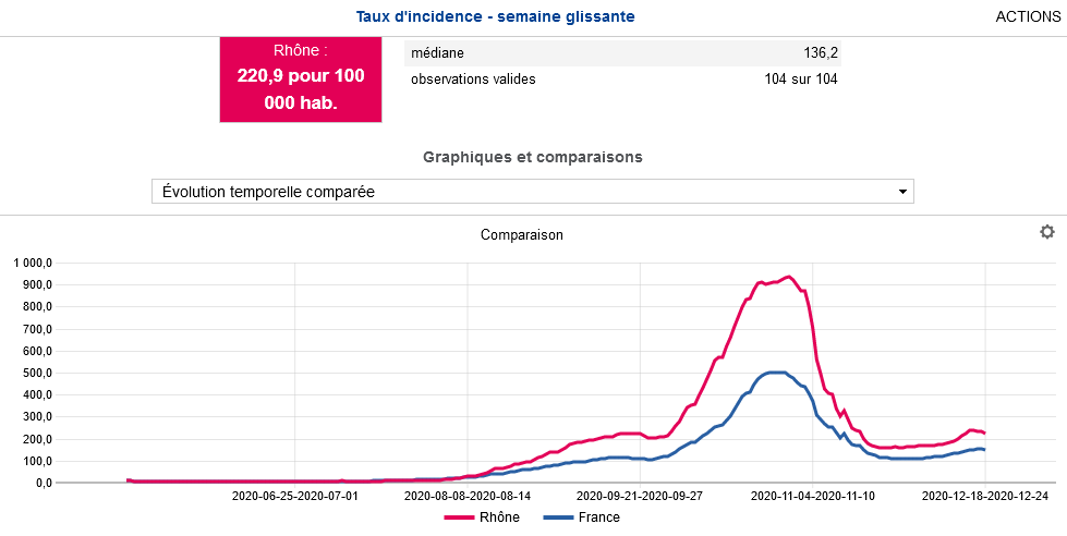 Comment l'interpréter ? Le virus circule toujours, beaucoup, et une reprise épidémique est possible à tout moment. Ce n'est pas encore le cas. Le nombre de cas n'a pas encore explosé à Lyon mais la menace est réelle. On va être très vite fixés avec les remontées après Noël... lorsque les chiffres seront consolidés. Il faut analyser les chiffres sur plusieurs jours car le nombre de tests peut varier en masse en fonction des jours fériés, des week-ends.