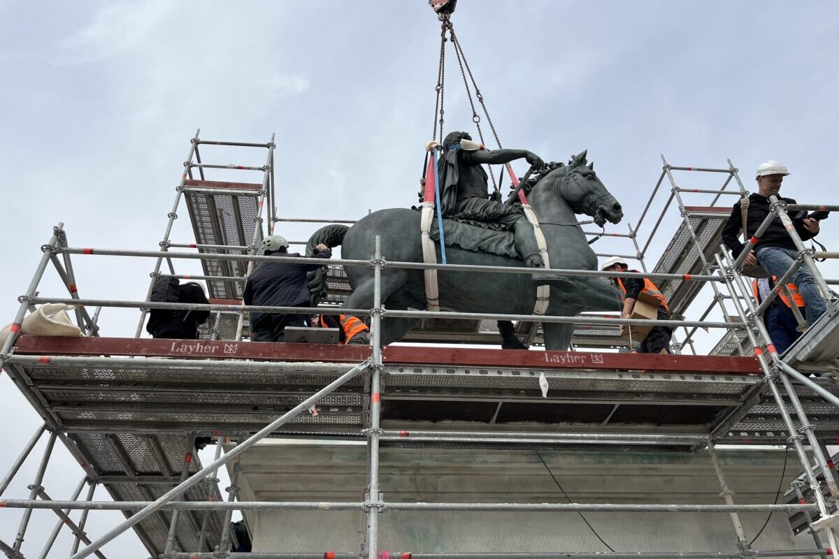C'est un petit évènement à Lyon. Orpheline depuis juillet dernier de la statue de Louis XIV, la ville a retrouvé son monument iconique ce mardi. La statue équestre a été reposée sur son socle de marbre, au milieu de la place Bellecour. Les travaux se poursuivront jusqu'au 22 mai autour de l'édifice.
