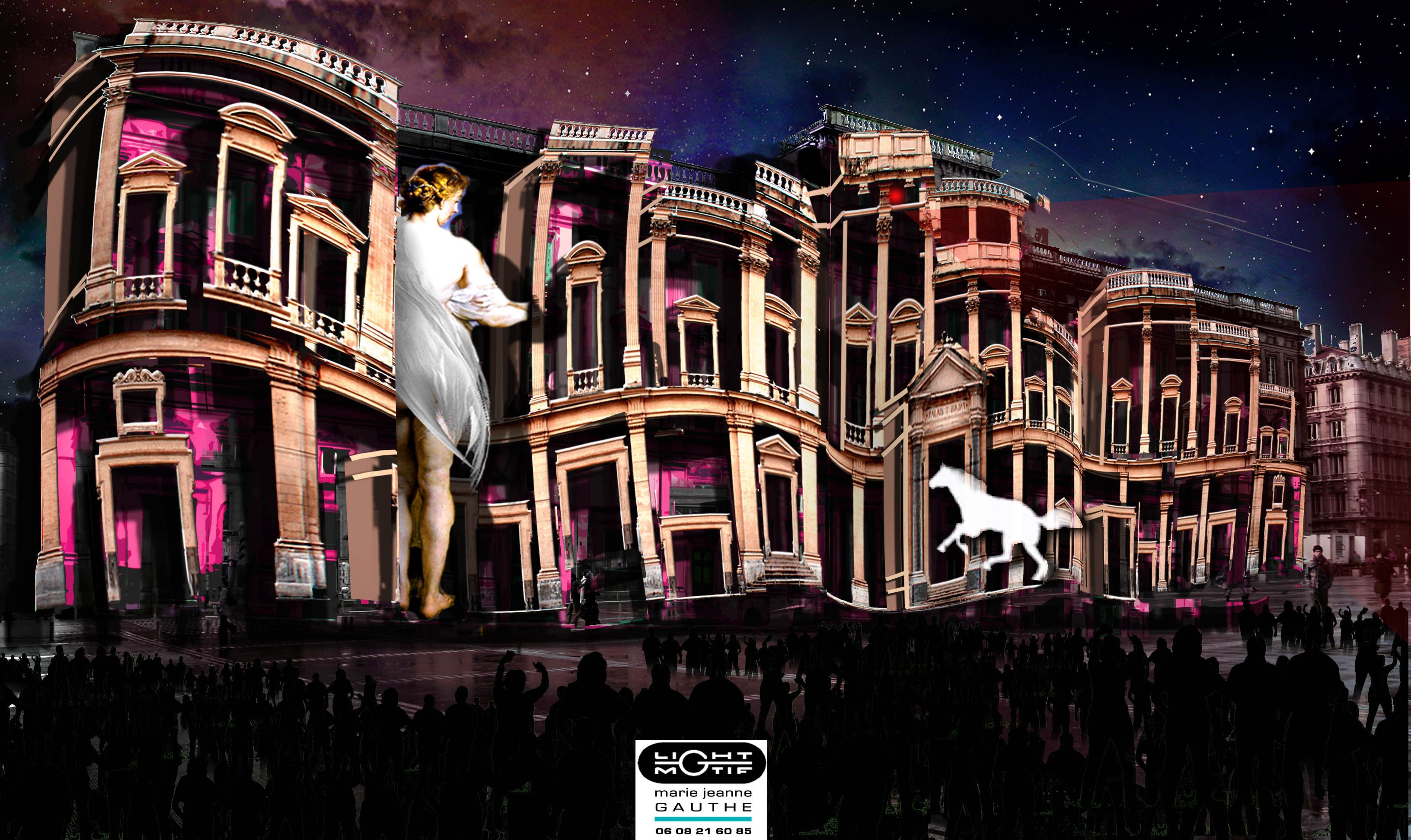 La place devant la mairie est chaque année l'un des hauts lieux de la fête des Lumières, ce qui est bien pratique pour le maire qui n'a qu'à sortir au balcon pour assister au spectacle. Cette année, aucune excentricité : une vidéo co-financée par EDF sera projetée sur la façade des bâtiments comme depuis plusieurs années. Et tout s'effondrera à la fin comme d'habitude. Plus d'excentricité en revanche du côté du thème inspiré de la fontaine Bartholdi située sur la place, représentant le Rhône. Ses personnages, en particulier ses chevaux cracheurs d'écumes s'ébroueront sur les façades durant une dizaine de minutes avant d'être maîtrisés par une naïade. A voir, si vous n'y avez jamais assisté.