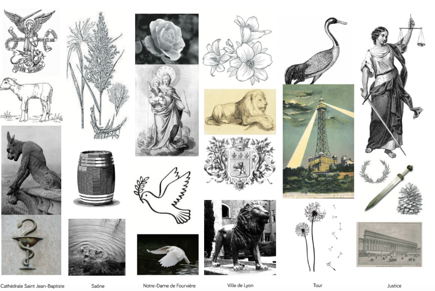 L'idée de Benjamin Nesme et son collègue Marc Sicard, à la conception graphique, est alors lumineuse : reprendre les symboles des édifices emblématiques de la colline de Fourvière et les intégrer sur un vitrail grisaillé fixe, projeté sur la façade de l'immeuble quai Romain Rolland.