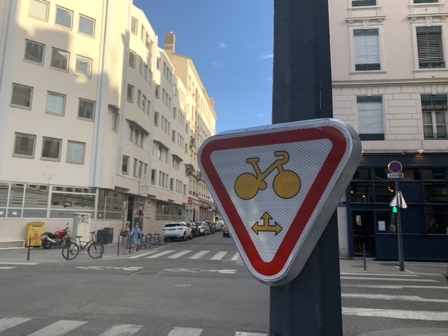 De nombreux panneaux M12 ont fleuri en dessous des feux rouges à Lyon. Destinés aux usagers vélos, ils permettent de fluidifier la mobilité dans Lyon tout en respectant la loi.