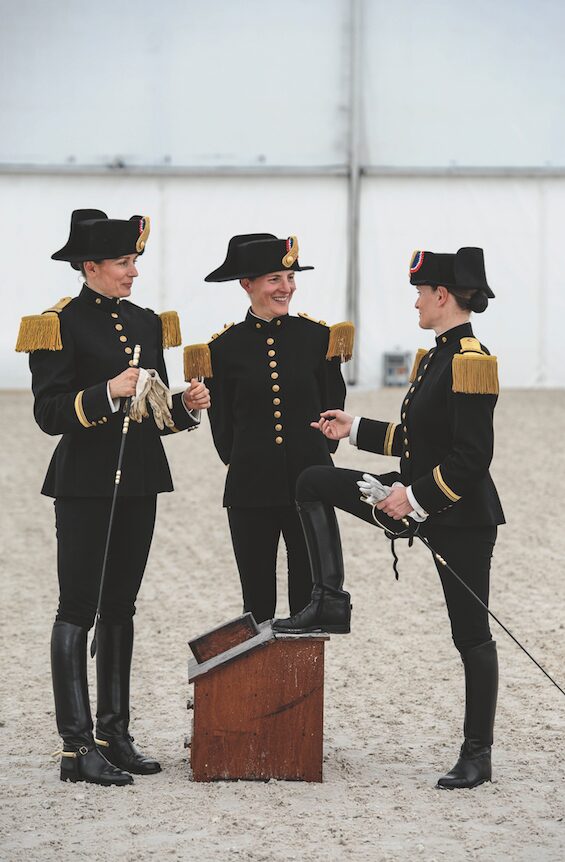 Des images en couleur dévoilent les détails symboliques : étriers "à la française", bottes réglementaires, selle à piquer ou encore nattage bicolore de l’écuyer en chef, autant de traditions qui participent à l’élégance singulière du Cadre noir.