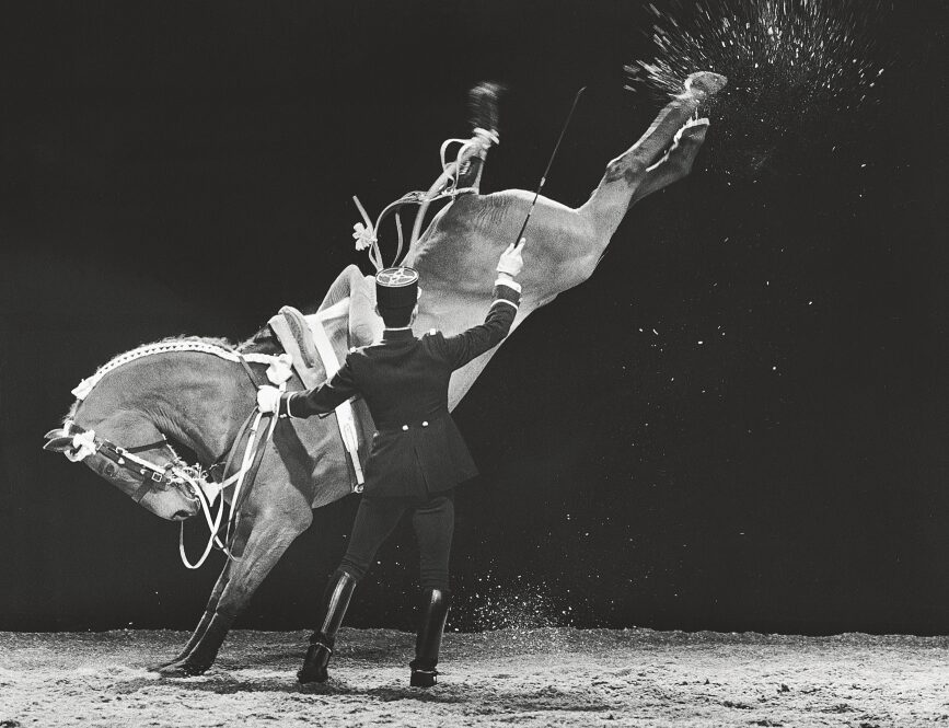 De nombreuses gravures et photographies anciennes montrent les écuyers au travail, les airs relevés, les figures académiques et les séances d’instruction. Les images contemporaines rappellent que cet héritage est toujours vivant, incarné par des cavaliers dont la rigueur et la précision sont immédiatement reconnaissables.