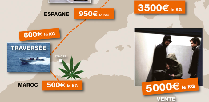 Dimanche 5 mai, la police espagnole a réalisé la plus grosse saisie de drogue jamais réalisée en Europe : 52,6 tonnes de cannabis. Valeur marchande : plus de 81 millions d'euros.En France, le marché du cannabis représenterait quasiment 1 milliard d'euros et emploierait 150 000 personnes.