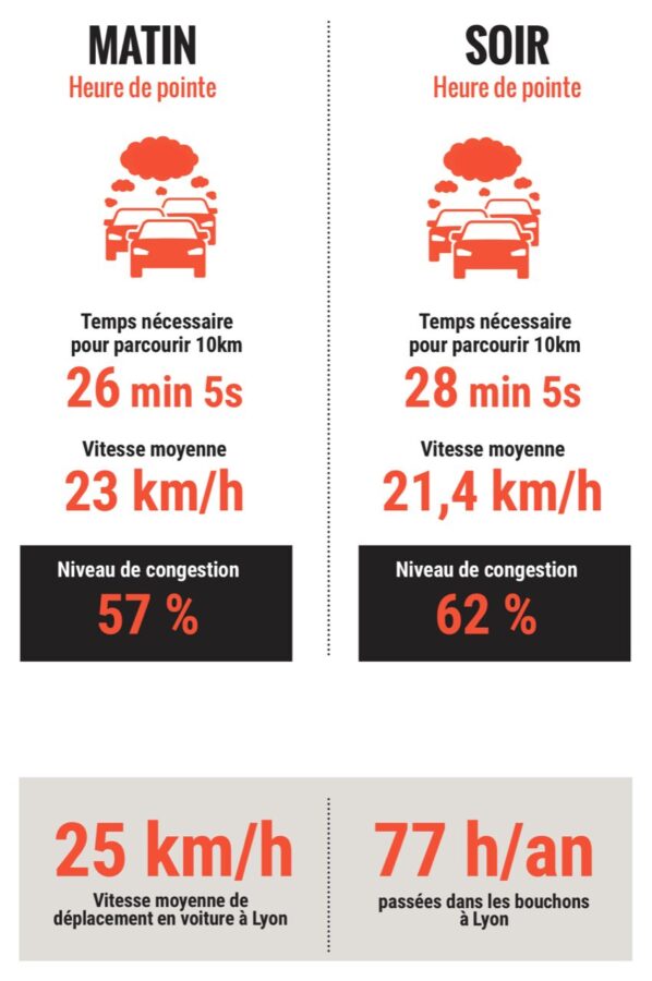 L’indice trafic TomTom évalue chaque année 501 villes du monde, dans 62 pays de tous les continents, en fonction de leur temps de trajet moyen et de leur niveau de congestion, et à partir des données de trafic remontées par près d’une voiture sur cinq. Qu’en est-il à Lyon ?
