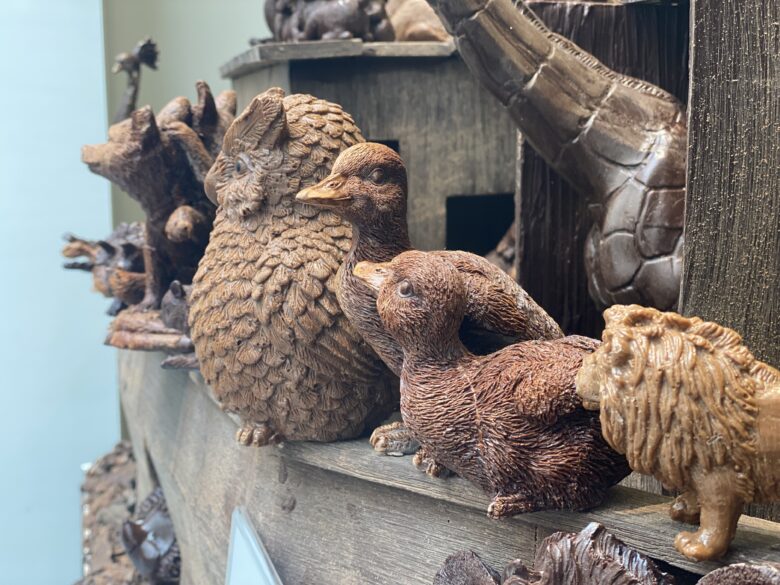 Bison, éléphant, koala, panda ? Pour Pâques, la maison Bouillet vous propose d'opter pour un animal en chocolat. Et il y en a pour tous les goûts. Le bison ravira les amateurs de chocolat noir, l'éléphant ceux de chocolat blanc, tandis que le panda plaira à ceux qui n'arrivent pas à se décider. Tous sont évidemment garnis, notamment de grignotines amandes et noisette, d'œufs noir, de lait praline, de pâte à tartiner, de caramel et de framboise.