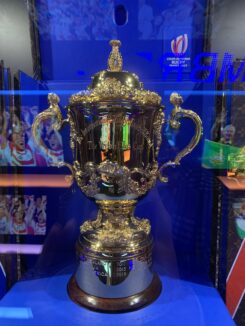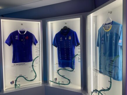 A son bord une exposition, des casques de réalité augmentée immersifs pour rentrer dans le stade de France et interagir avec les joueurs, des maillots signés et de quoi vous entraîner à la mêlée mais surtout au bout du wagon la coupe la seule et l’unique Webb Ellis qui sera remise aux champions de cette coupe 2023.