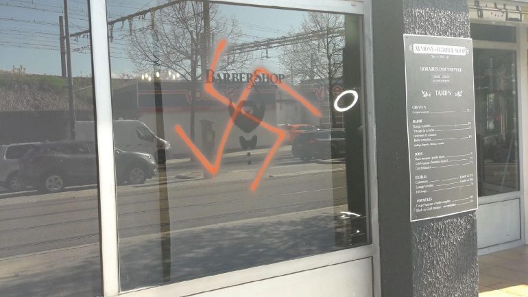 Cette nuit plusieurs croix gammées et inscriptions racistes ont été peintes avenue Berthelot à Lyon.