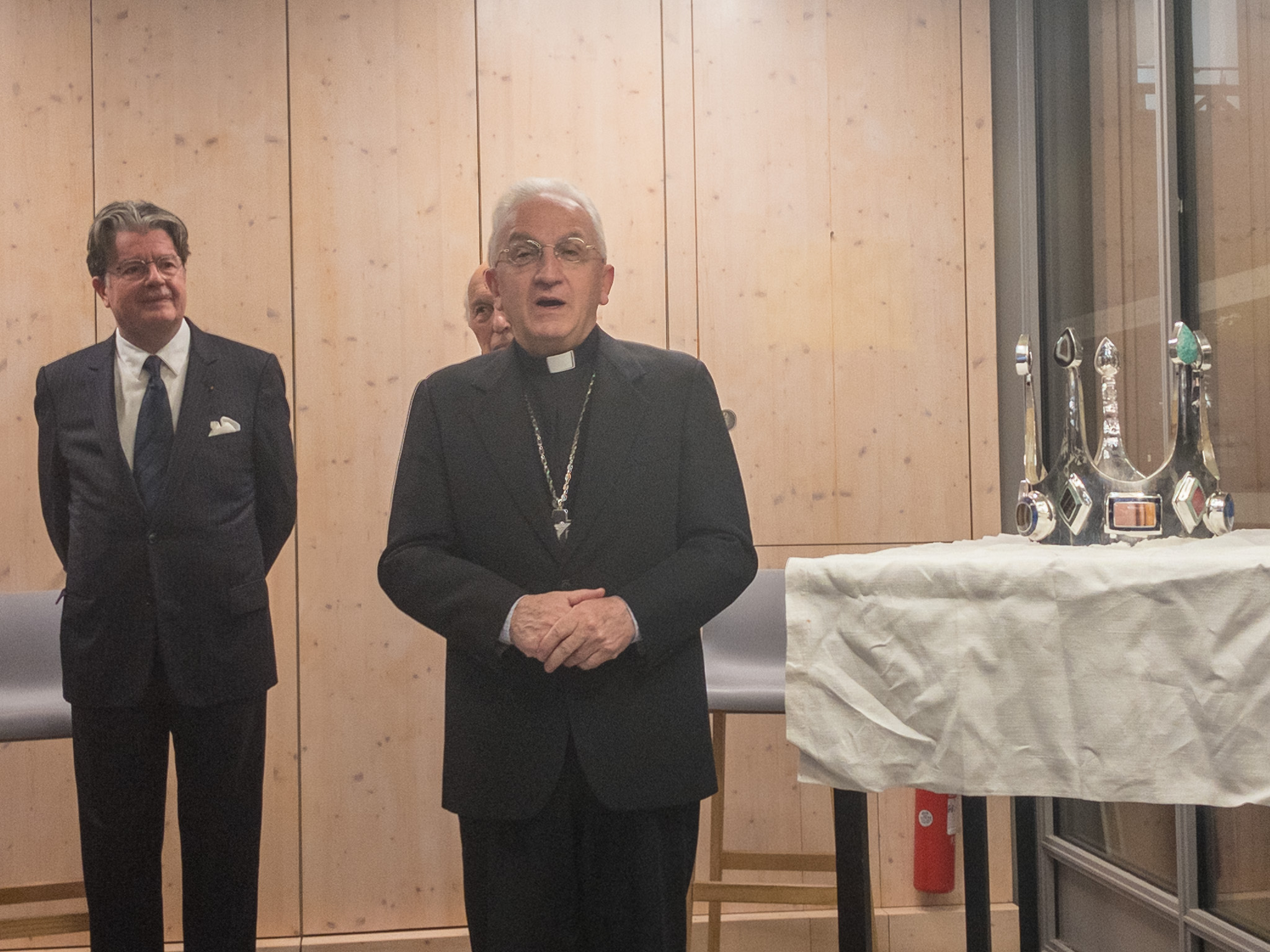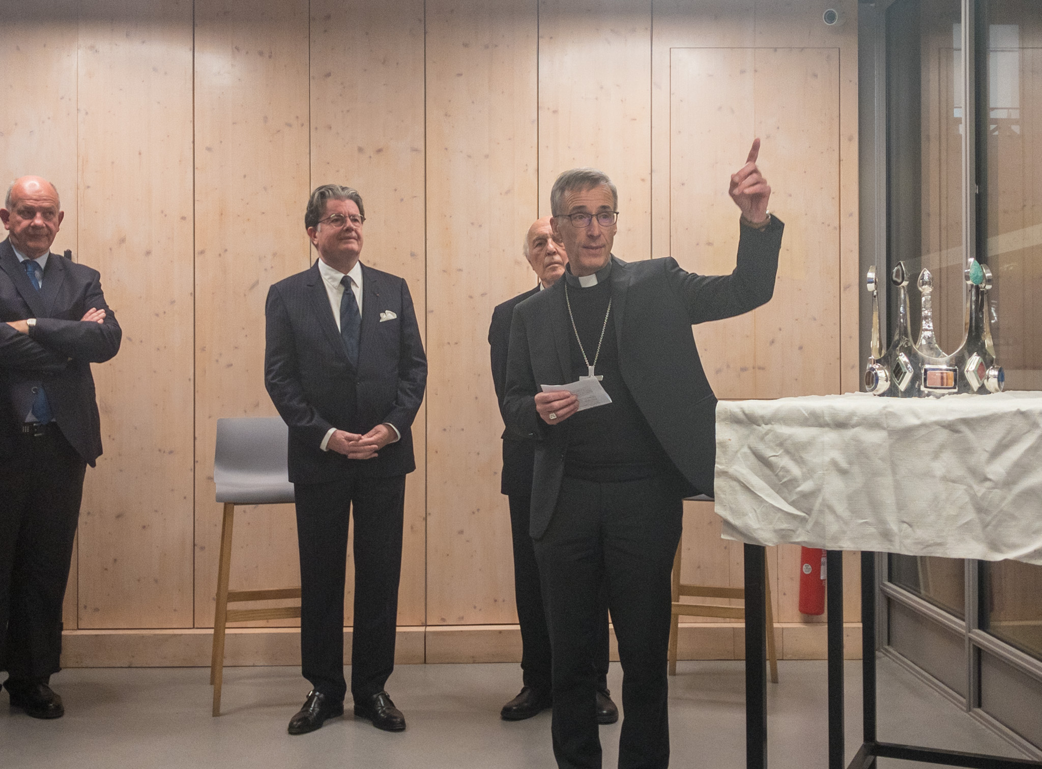 Ce jeudi 1er décembre était une journée importante pour le diocèse de Lyon et la fondation Fourvière. Il marque en effet à la fois le re-couronnement de la statue de la Vierge Notre-Dame de Fourvière après son vol en 2017, la mise en lumière du "Merci Marie" pour les festivités de la Fête des Lumière qui est aussi la fête de l'Immaculée Conception, et enfin la bénédiction de la Crèche des Lyonnais dans la crypte de la Basilique.