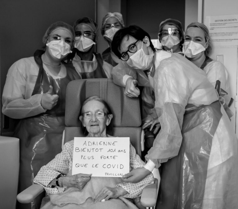 Des messages positifs, des victoires au quotidien pour nos patients et nos équipes de l'hôpital #EdouardHerriot #HCL. Ici, c'est "Adrienne, bientôt 101 ans, plus forte que le #COVID" pic.twitter.com/b3uD6asirk
