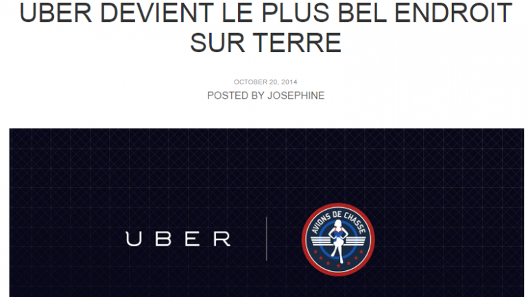 L'équipe lyonnaise de la société américaine Uber souhaitait passer la vitesse supérieure en troquant ses habituels chauffeurs contre des mannequins amateurs pour effectuer certaines courses entre le 23 et le 25 octobre. Pour ce faire, les usagers devaient rentrer le code "UBERAVIONS" pour tenter leur chance. Les modèles étaient fournis par Avions de chasse, expression peu valorisante désignant une femme "à la carlingue avantageuse".