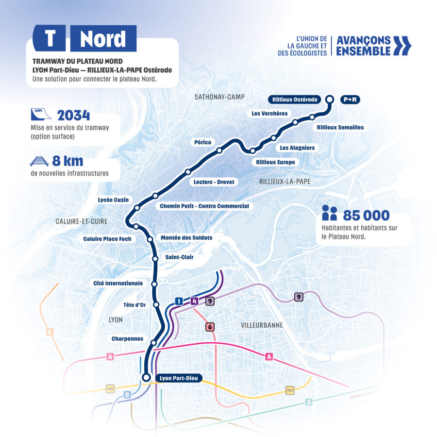 Bruno Bernard défend de son côté une "proposition d'équilibre" avec deux lignes structurantes, le TEOL et donc, le tramway nord. Un projet qu'il dit "réfléchi et utile", et dont les origines sont à chercher selon lui dans les résultats de la consultation métro lancée en 2021. "Il est ressorti que le besoin le plus important était une desserte du plateau Nord, mais une prolongation du métro B était globalement infaisable, estimée à environ 3 milliards d'euros", indique le candidat de la liste "Avançons ensemble".