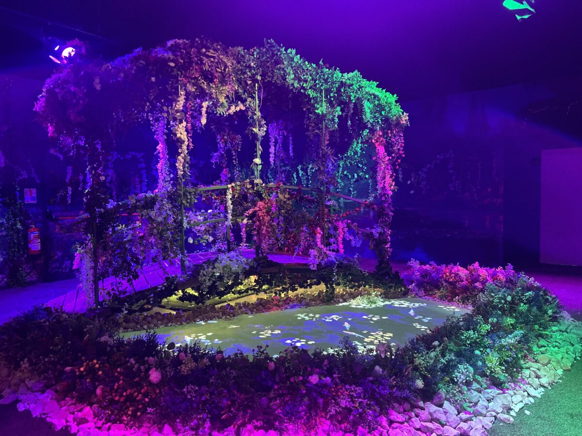 Passé la porte de l'atelier, nous arrivons dans le jardin de l'artiste à Giverny, où il est possible de fouler le célèbre pont japonais vert. Après une courte halte de verdure, direction la pièce finale. Là, nous nous installons dans des transats et nous nous laissons envoûter par une immersion en musique dans plus de 300 tableaux. Projeté sur les murs et le sol, le spectacle donne vie aux œuvres de Monet, avec un passage par la fameuse gare Saint-Lazare tant peinte par l'artiste. Bonus, nous avions accès à l'espace réalité virtuelle, dans lequel nous avons pu suivre Claude Monet lors d'un voyage en barque à travers ses toiles les plus iconiques, jusqu'à sa maison à Giverny.