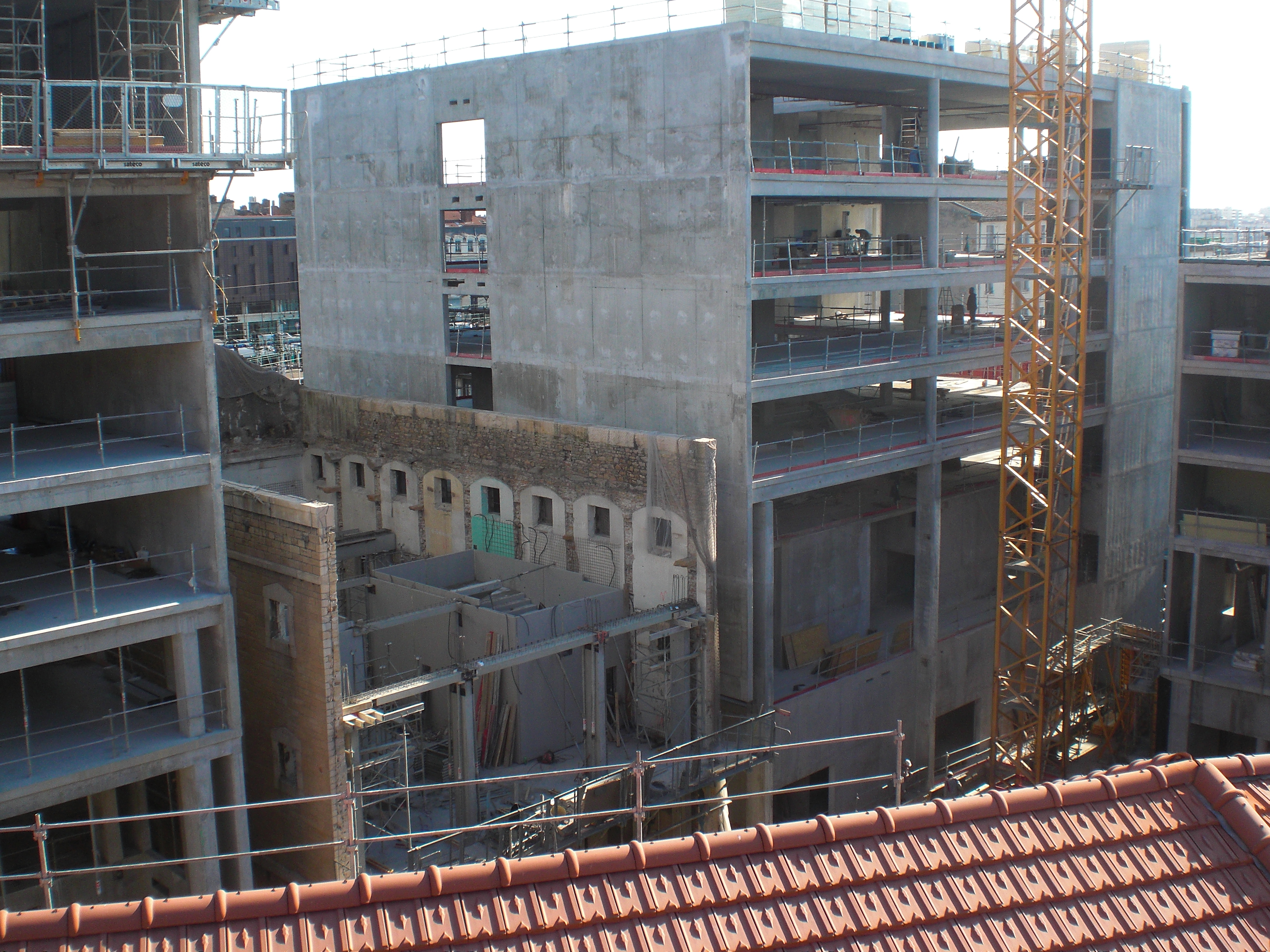 Les travaux se réalisent dans le sens des aiguilles d'une montre. Ici, l'un des bâtiments les plus aboutis, qui abritera les locaux de l'ESDES.