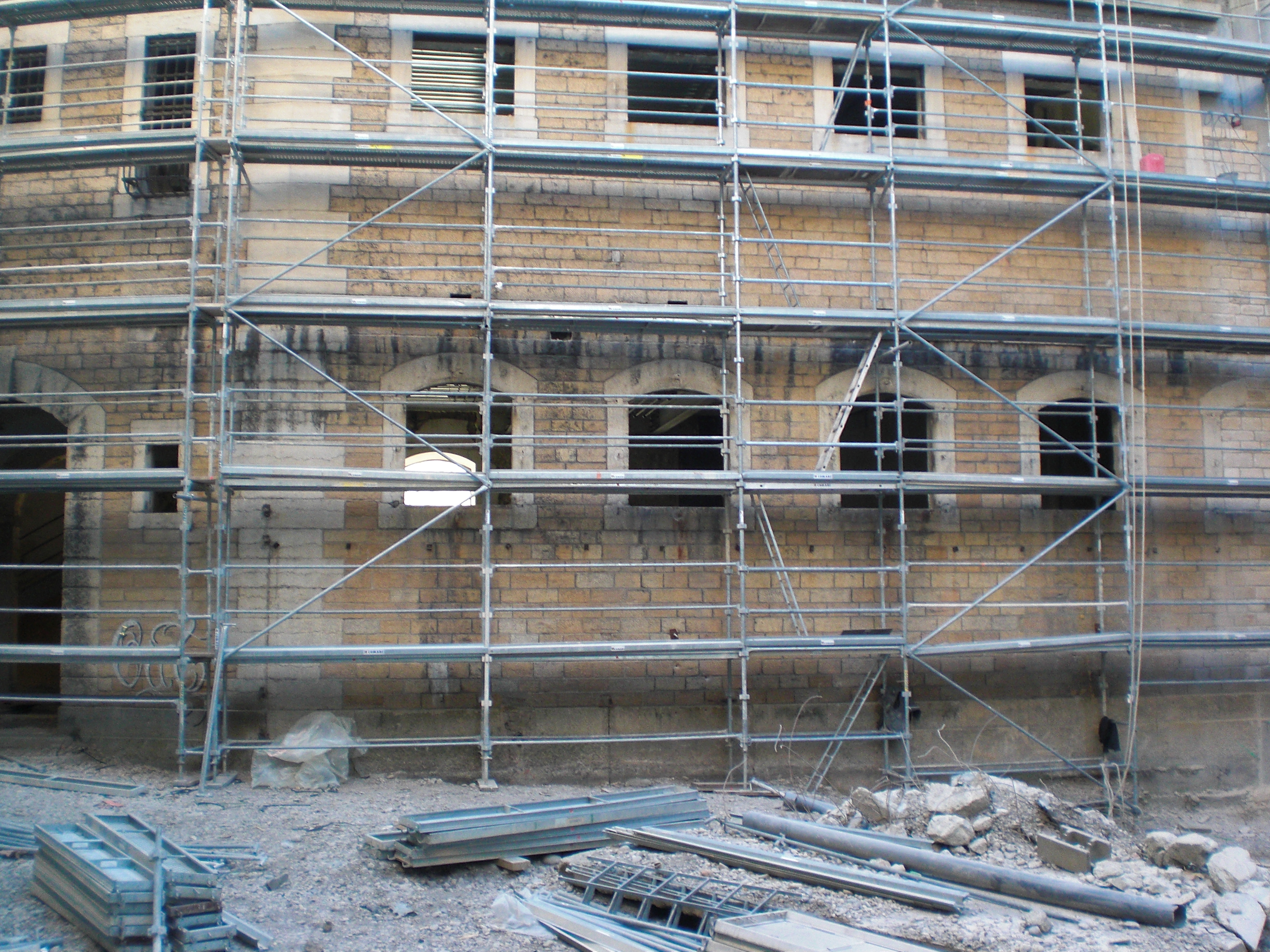 Entre deux immeubles neufs, un édifice datant du XIXe siècle. Les négociations lors du rachat de la prison Saint-Paul par l'université catholique de Lyon ont abouti à l'accord suivant : 40 % des bâtiments et/ou de parties (murs, plafonds, escaliers...) provenant de la prison doivent être conservés sur l'ensemble du futur campus.