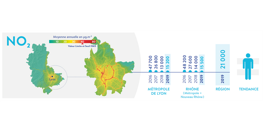 Concernant les particules fines, 65 % de la population reste exposée, principalement dans la métropole de Lyon. Malgré la baisse, les seuils mesurés restent supérieurs à ceux de l'OMS.