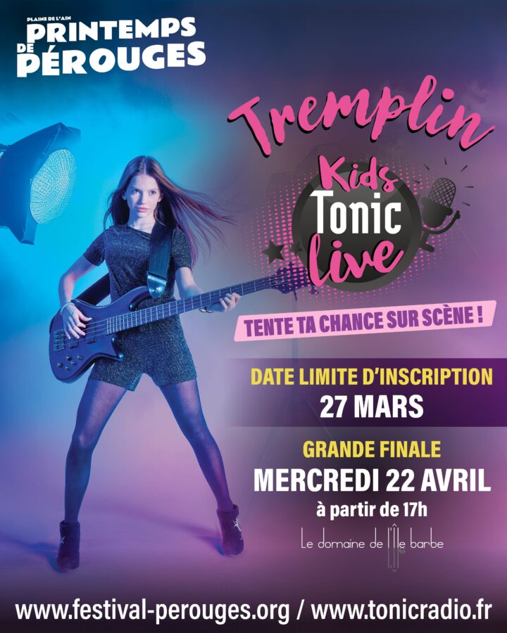 En ce qui concerne le "Tremplin Kids Tonic Live", la finale se déroulera au domaine de l'Ile Barbe, et les inscriptions sont possibles jusqu'au 27 mars prochain. Les lauréats auront ainsi l'occasion de se représenter pendant des premières parties des différents concerts.