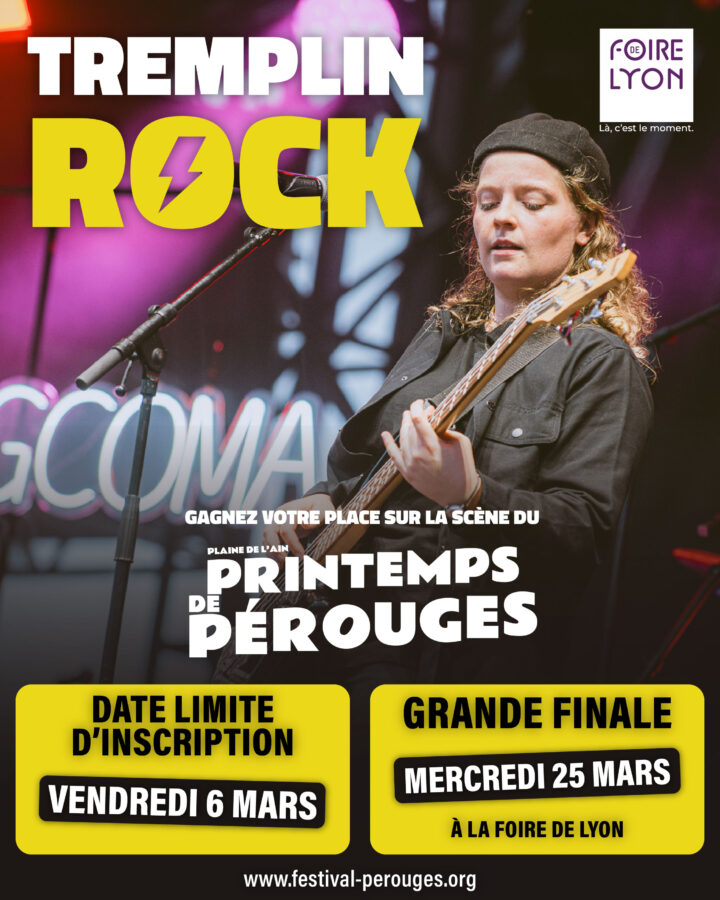 Pour le tremplin rock, les inscriptions sont ouvertes jusqu'au 6 mars et la grande finale se tiendra le mercredi 25 mars à la Foire de Lyon. A noter que le groupe vainqueur aura la chance de se produire en ouverture de l'un des concerts rock du festival.