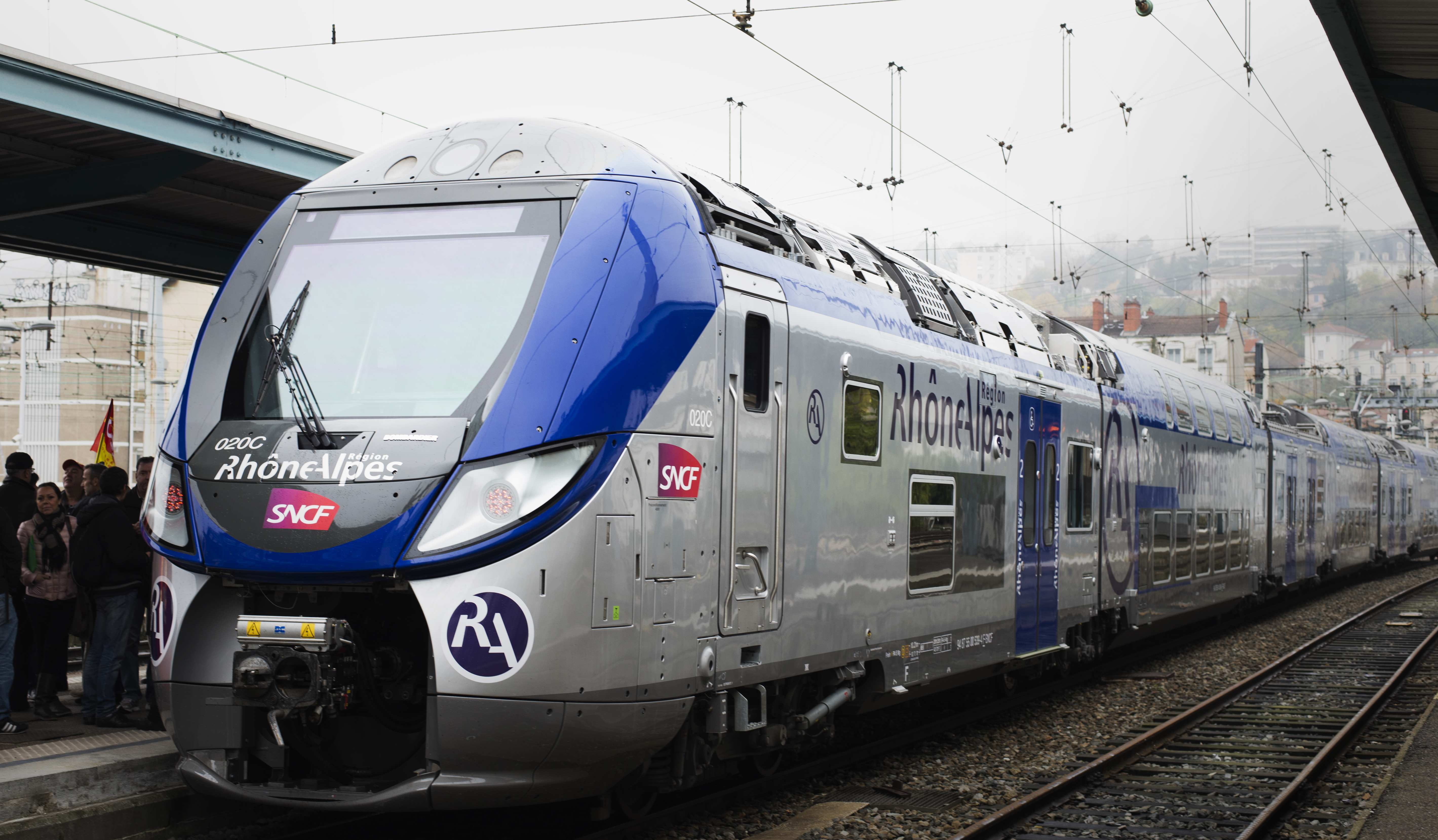La nouvelle rame de TER a été présentée aujourd'hui à la gare Perrache, en présence du président du conseil régional. Les 40 "Regio2N" commandés auront coûté 400 millions d'euros.
