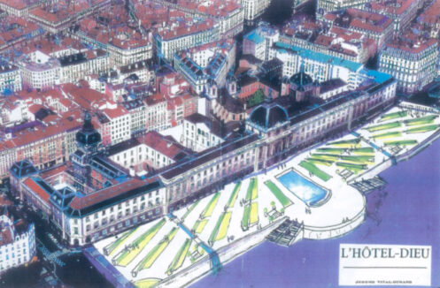 Dans leur présentation au concours pour la rénovation du Grand Hôtel-Dieu, plusieurs architectes avaient déjà planché sur des projets d’esplanades et de réaménagement des quais, en supprimant notamment l’axe routier.