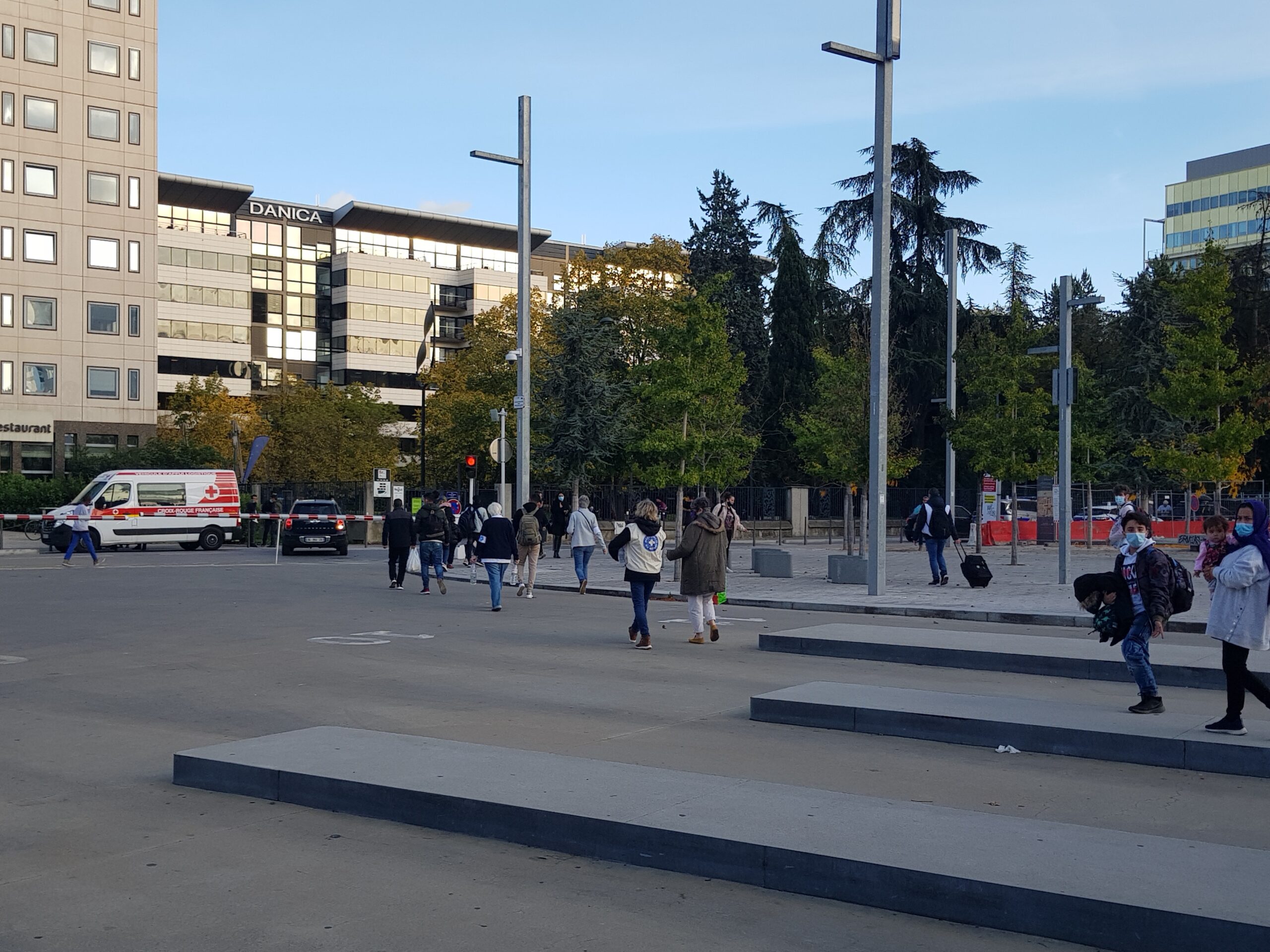 Il est à peine 17 heures mardi 26 octobre, lorsque les deux bus de migrants partis de Briançon se garent sur le parking de la gare routière de la Part-Dieu. À leur bord, une soixantaine de migrants dont femmes et enfants cherchent à continuer leur route vers le nord. Le comité d'accueil est particulier : une dizaine de bénévoles de Médecins du Monde et une vingtaine de policiers. Cependant, en amont dans la journée, la préfecture du Rhône avait précisé "qu'aucune interpellation ne sera effectuée à leur arrivée" assure Paola Baril, coordinatrice régionale Médecins du Monde.