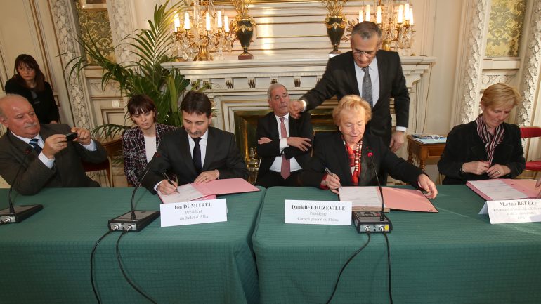 Pour officialiser cette nouvelle action de coopération, une délégation roumaine avait fait le déplacement à Lyon, lundi 9 décembre, à l'Hôtel du département. Ion Dumitrel, président du Judet d'Alba et Ioan Iancu, maire d'une commune locale, ayant construit 10 logements sociaux pour les Roms, ainsi que Martha Breeze, directrice de l'international, du retour et de la réinsertion à l'Office Français de l'immigration et de l'insertion (OFII) ont officiellement apposé leurs signatures sur la convention engageant le département à leurs côtés.