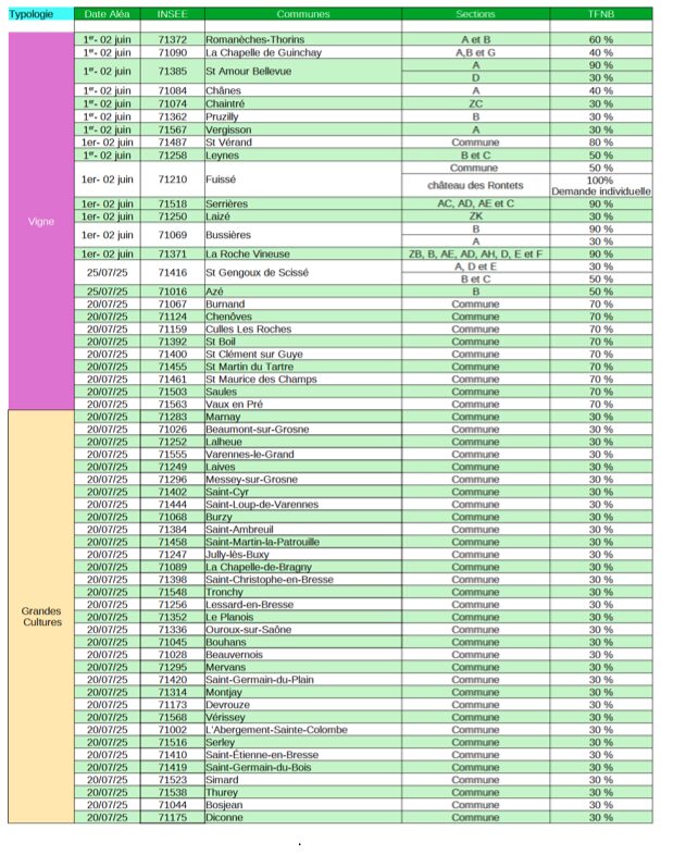 Synthèse de dégrèvement par commune (communiqué de presse de la préfecture de Saône-et-Loire)