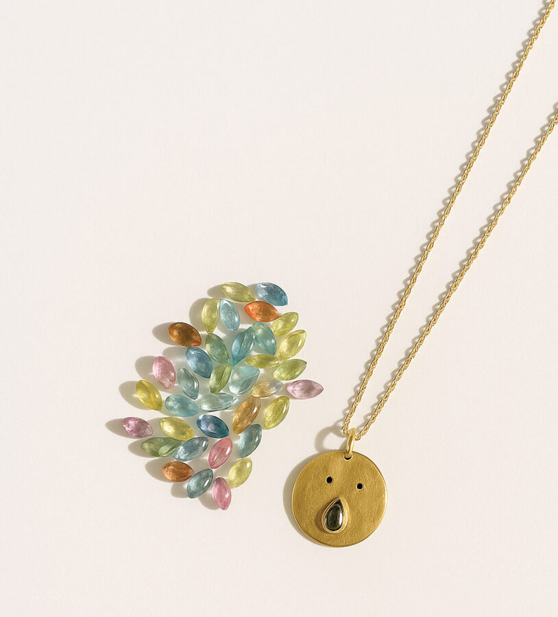 Médaille Tronches en or et pierres précieuses – À partir de 495 euros.