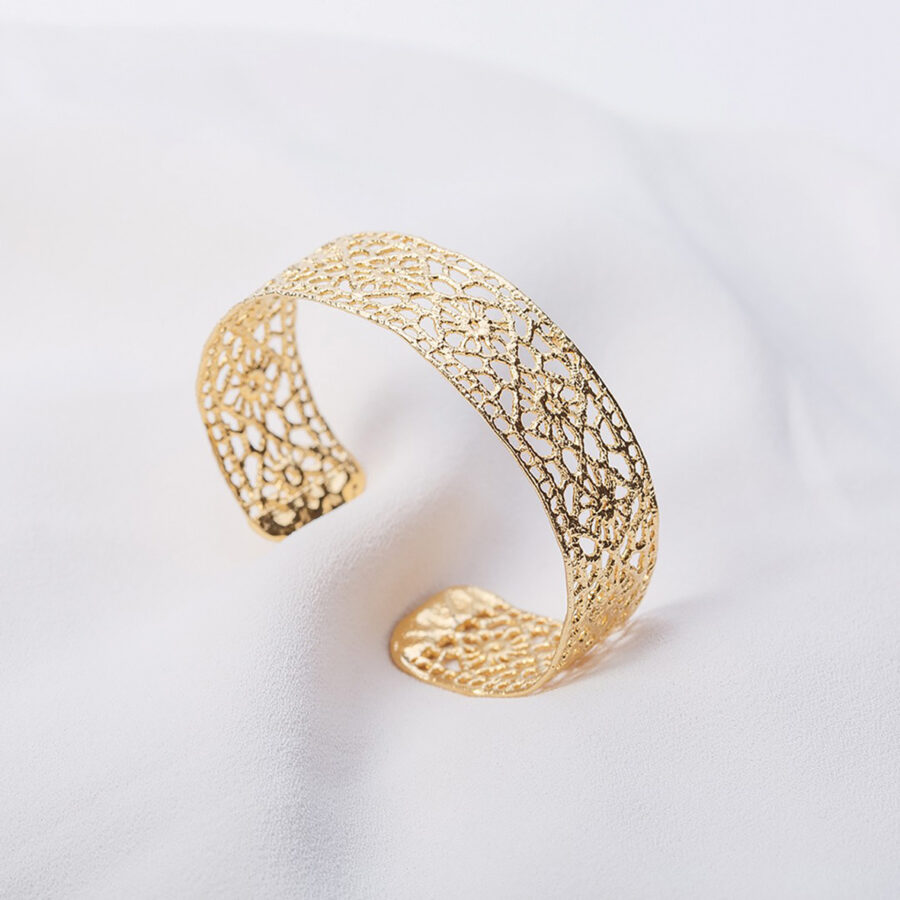 Moulée avec précision à partir d’une dentelle authentique des années 30, cette délicate manchette célèbre le style géométrique et sophistiqué de cette époque. Mêlant glamour et vintage, elle se porte aussi bien en mode chic qu’au quotidien. Un bijou unique au design graphique créé par Camille, dans sa boutique atelier du quartier d’Ainay.