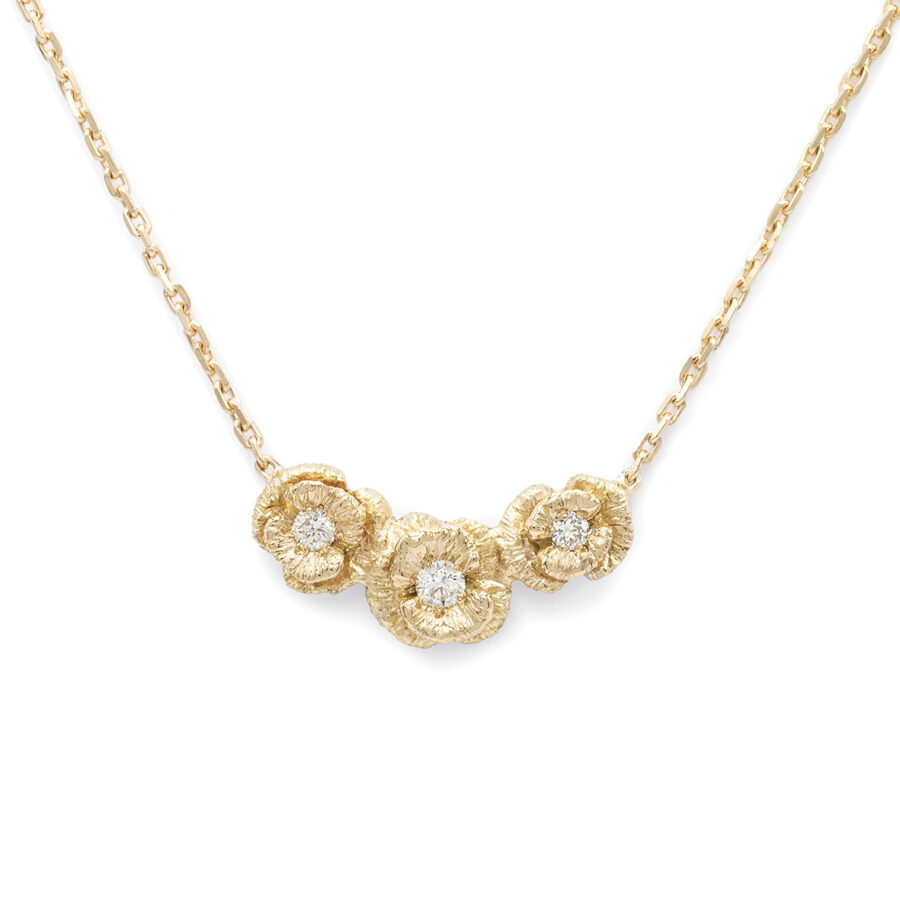 La maison Tiara Milo, c’est un duo de joaillières qui créent et fabriquent artisanalement des bijoux d’exception inspirés de la nature, dans leur atelier lyonnais. En or rose recyclé, ce collier serti de diamants reproduit subtilement le froissé des pétales du coquelicot, fleur délicate par excellence. Poétique et raffiné, il se porte facilement au quotidien.