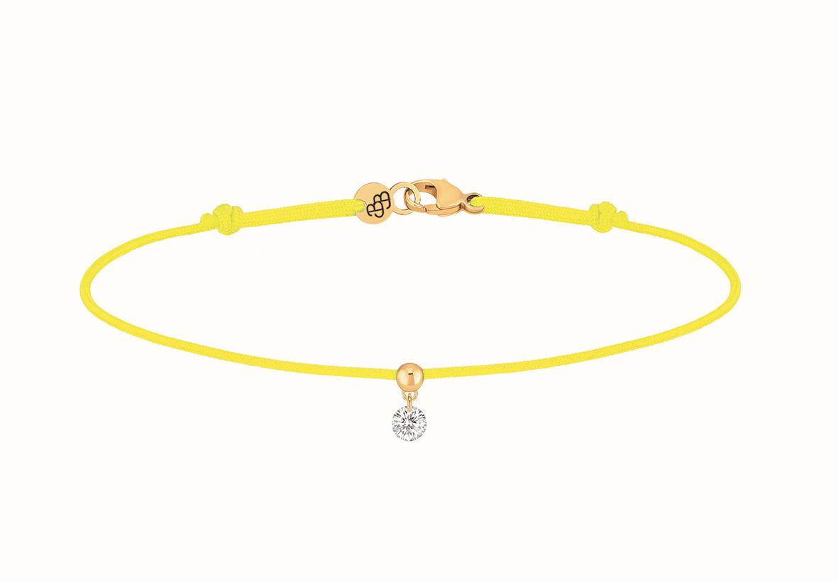 Chez La Brune & La Blonde, le diamant s’affiche nu, sans serti, révélant ainsi sa splendeur et son éclat. Avec ce bracelet dont le cordon se décline en dix couleurs et l’or en jaune, rose ou blanc, vous porterez votre solitaire à même la peau, dans un style à la fois tendance et raffiné. Petit plus : il est fabriqué dans un atelier joaillier au cœur de la vallée du Rhône.