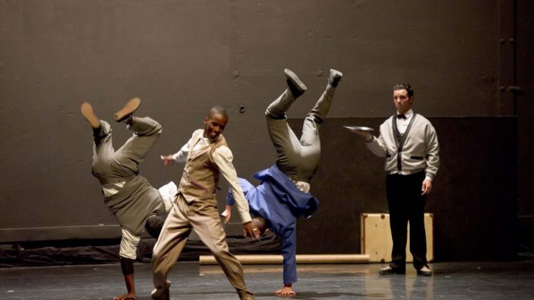 Clin d'œil à leurs débuts dans le break-dance, quand ils s'entraînaient sous les arcades de l'opéra de Lyon, les onze danseurs ont traversé la rue et investissent un nouveau terrain de jeu : la cour de l'hôtel de ville et ses rambardes.