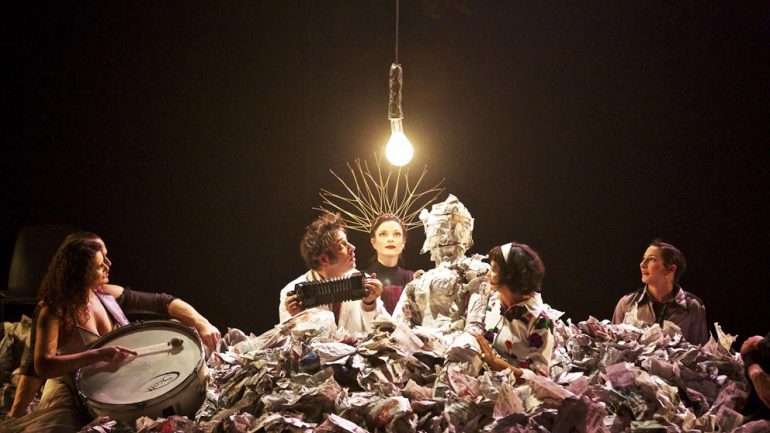 Créé par Anja Krips et Frédéric Zipperlin, ancien membre du Cirque du Soleil, le cirque Bouffon présente aux Célestins son nouveau spectacle. Synonyme de libération, Solvo propose une pause dans un monde submergé par l’information et l’omniprésence des médias. Sur scène, une montagne de papier journal, clin d’œil à cet envahissement médiatique.