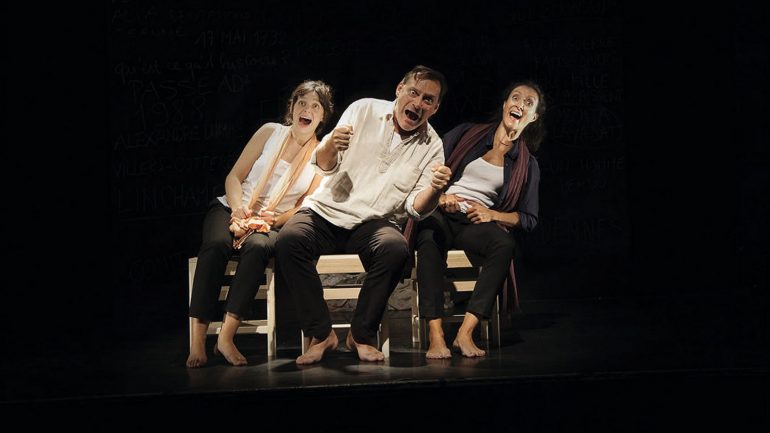 Sur une scène nue – afin de laisser la plus grande place à l’imaginaire – deux femmes, la mère et la fille, discutent. Quand débarque un jeune homme, un peu perdu. Il commence à raconter son histoire. Et on le retrouve, sous les traits d’un autre acteur, costumé différemment, dans les Ardennes, par une nuit pluvieuse. Après diverses péripéties, le voilà dans un cimetière sinistre où une tombe qu’il déplace pour enterrer son père laisse échapper de vieux carnets manuscrits. Il en ouvre un et nous changeons non seulement de lieu mais aussi d’époque ! Nous voilà dans une calèche, au début du XIXe, en compagnie d’un certain Alexandre Dumas et d’une mystérieuse jeune fille. Une nouvelle histoire débute. Qui débouchera sur une autre ou rejoindra la précédente… Ainsi progresse la pièce, conçue à la façon de poupées russes s’emboîtant à l’infini. Une construction virtuose : l’attention du spectateur n’est jamais perdue en route. On pense à un autre conteur de la scène théâtrale actuelle : Wajdi Mouawad.