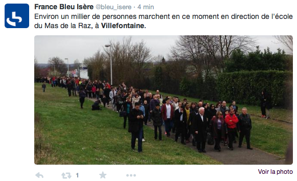 Plus d'un millier de personnes participent à la marche silencieuse en soutien aux familles et aux enfants victimes du viol de leur directeur d'école à Villefontaine. Les habitants s'étaient rassemblés au parc du Vellein un peu plus tôt dans l'après-midi.
