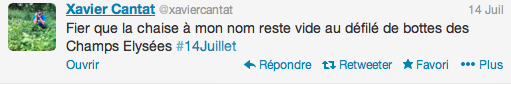 Ce dimanche 14 juillet, Xavier Cantat s'était réjoui de ne pas être présent lors du traditionnel défilé du 14 juillet à Paris auquel les membres du gouvernement et leurs conjoints sont habituellement conviés.