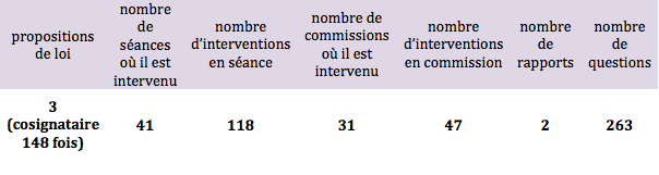 Mais, le député a ses marottes à l’Assemblée. Il est notamment très prolifique en matière de questions : à plus de 260 reprises, il a interrogé les différents ministres. Un chiffre qui relève plus du travail de ses assistants parlementaires que de sa propre activité. D’autant que dans ces nombreuses questions, la même est revenue à 38 reprises entre octobre 2012 et décembre 2013, concernant les réductions d’effectifs dans les cabinets ministériels.