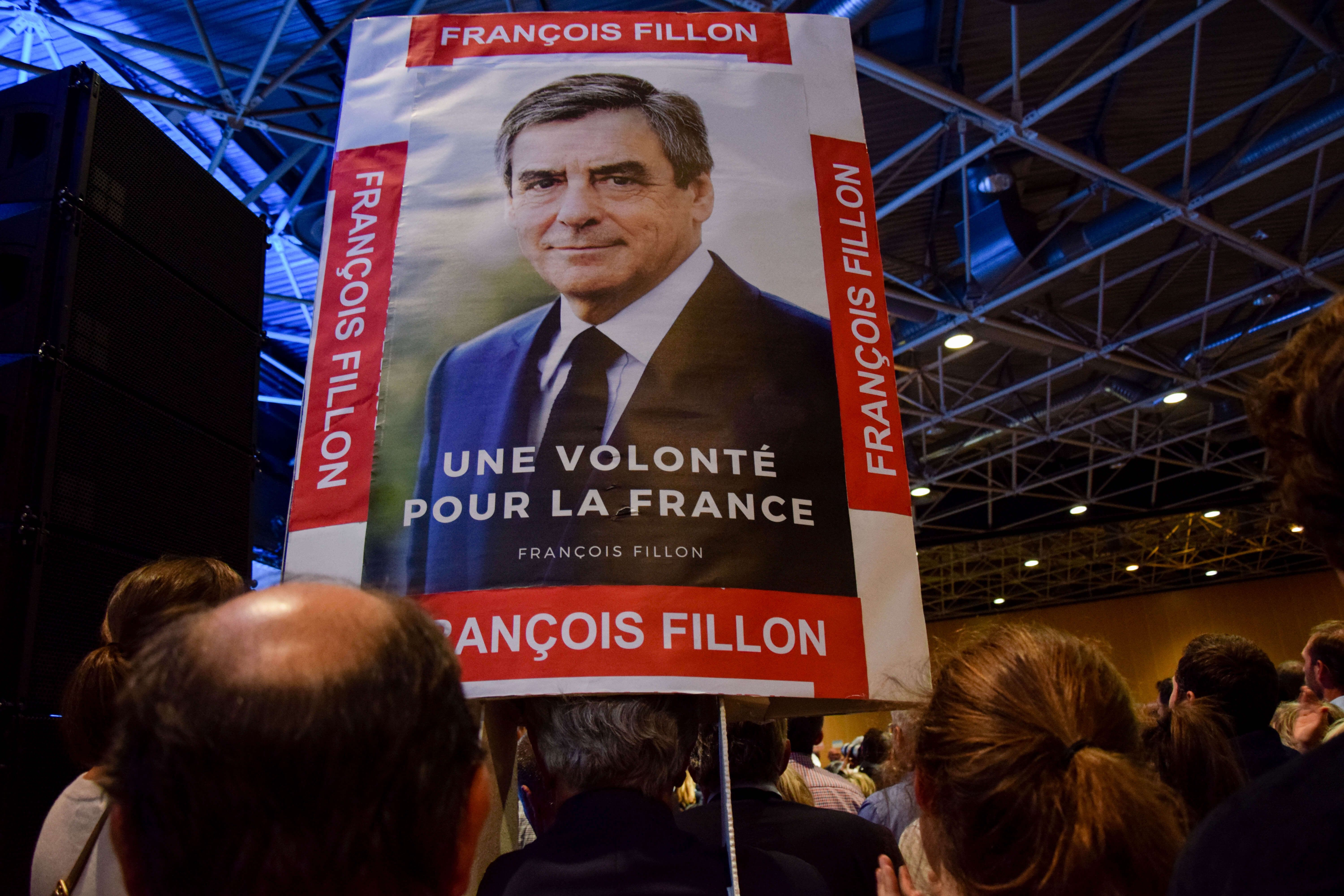 Le discours se termine. Devant les barrières, un petit garçon aux cheveux roux et aux joues tricolores entame avec l’auditoire le refrain “On va gagner !” Laurent Wauquiez sur les talons, François Fillon file vers la sortie en traversant la foule. Une horde de cinquantenaires hystériques les interpelle : “Fillon, je t’aime !”, “Laurent, un bisou !” À coups de coude, une petite dame en jupe rouge tente de forcer le barrage de la sécurité pour toucher le candidat.
