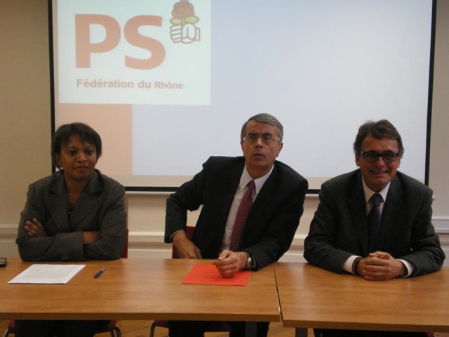 Tout sourire, Hélène Geoffroy a rappelé ce vendredi son engagement en faveur de l'insertion professionnelle et du retour à l'emploi. Elle a parlé de l'insertion professionnelle des jeunes chercheurs, de l'alternance dans les écoles d'ingénieur et du tutorat dans les collèges et lycées comme de futures pistes de travail. Pour accompagner sa candidature, elle fera tandem avec le maire de Rillieux : Renaud Gauquelin. Celui-ci avait envisagé se présenter lui-même, avant de penser rallier Annie Guillemot. Mais la situation explosive à Bron et l'engagement un peu trop marqué de la mandataire de Martine Aubry dans le Rhône durant les primaires a achevé de convaincre ce pro-Hollande de se ranger derrière la Vaudaise, soutien de Ségolène Royal.