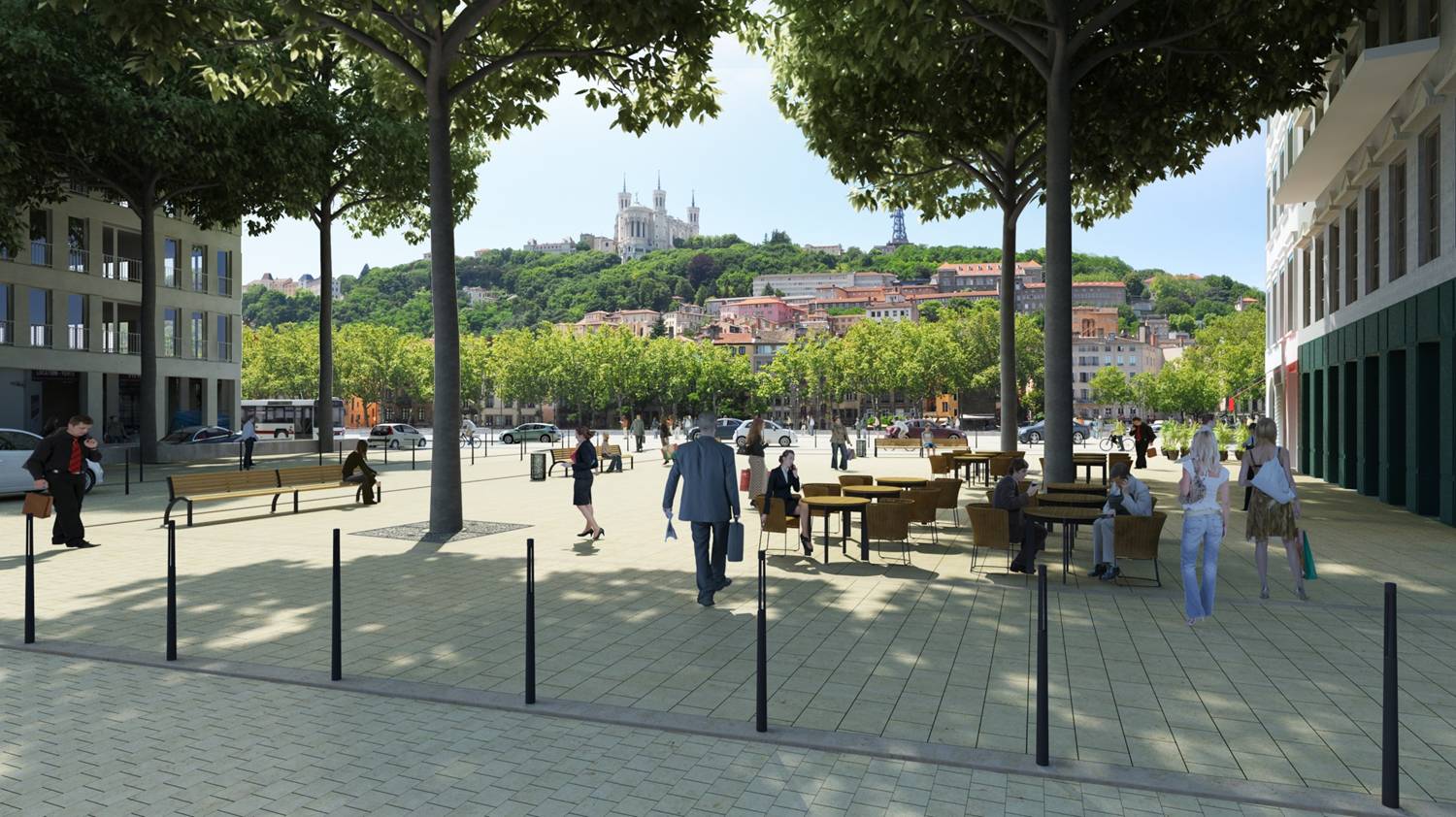 Deux niveaux sont identifiés : le quai haut, avec la voirie, les bouquinistes, les buvettes, le marché, et le quai bas dédié aux promeneurs, qui compte jusqu'à 34 mètres de large - soit la taille des berges du Rhône - et organisé en "strates de vie". Cet espace comprend notamment une cour de récréation en apesanteur, à 1,70 mètre du niveau de la rivière. Une trentaine d'essences végétales viendront habiller ces terrasses, avec notamment des "saules arbustifs" au niveau de la rivière. Seront aussi réaménagées les places d'Ambon et Saint-Nizier, contiguës, Port du Temple (au niveau des Jacobins et de la passerelle du palais de justice) et Antonin Gourju (au niveau de Bellecour).