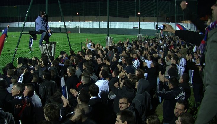 Lors de leur arrivée à Tola Vologe, les supporters ont pu assister à la fin de l’entraînement en reprenant des chants et saluant chaleureusement les joueurs. Les membres du staff technique ont voulu marquer le coup en arborant des écharpes à l’effigie des BG. Présent pour cette dernière séance de la semaine, Jean-Michel Aulas est venu échanger avec les supporters de l’OL. Un bref discours sans caméras et micros à la demande du président lyonnais. Le rassemblement s'est terminé comme il avait commencé : dans le calme et la bonne humeur. Mais surtout avec la volonté farouche de voir Lyon battre Saint-Etienne à l’occasion du 107e derby de l’histoire.
