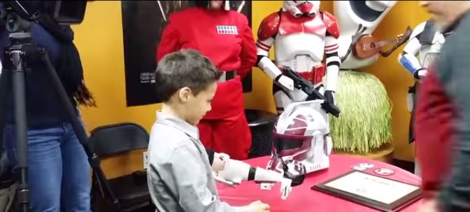 Fan de Star Wars et âgé de sept ans, Liam Porter possède maintenant une prothèse de bras imprimée en 3D, dont le design et les couleurs sont inspirés des Stormtroopers (soldats d'élite de l'univers Star Wars).